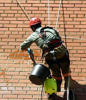 Альпинистами компании осуществляется мытье фасадов зданий, окон после ремонта с помощью различных современных средств: